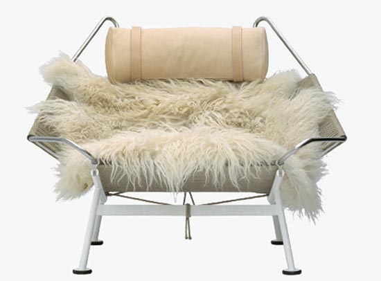 The chair is made of plaited flag halyard with the longhaired sheepskin softening the sharpness of the steel industry, added comfort.