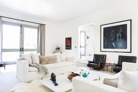 l'été n'en fini pas à Malibu, dans cette sublime villa ou la simplicité est de mise et pour laquelle j'ai eu un coup de coeur pour les sols blancs, les bois usés réutilisés pour créer des sofa... le paradis!!!